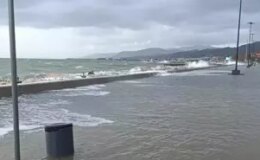 Balıkesir‘in Edremit ilçesinde etkili olan şiddetli lodos fırtınası hayatı felç etti. Saatteki hızı 90 kilometreye ulaşan fırtına sebebiyle deniz taştı, turistik işletmeler sular altında kaldı. Kara ile denizin birleşmesi sonrası ekipler alarma geçti.